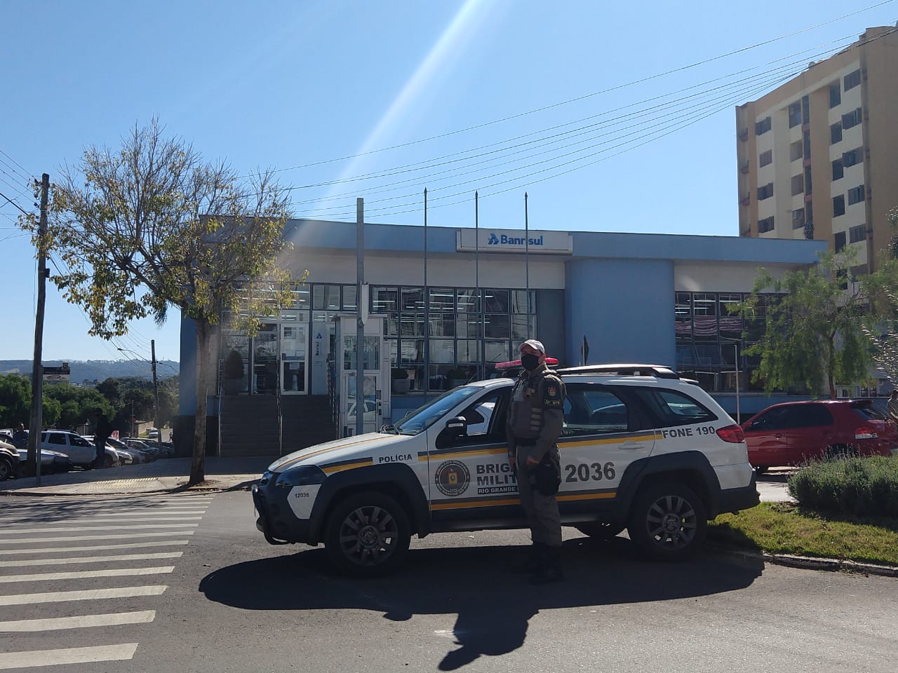 36ºBPM Durante a Operação Bancos, a Brigada Militar realizou patrulhamento preventivo ostensivo, com ação de visibilidade nas proximidades dos estabelecimentos bancários, visando coibir possíveis delitos, bem como identificar suspeitos de prática destes e de outros crimes, propiciando maior segurança na área bancária das cidades de nossa área de ação.