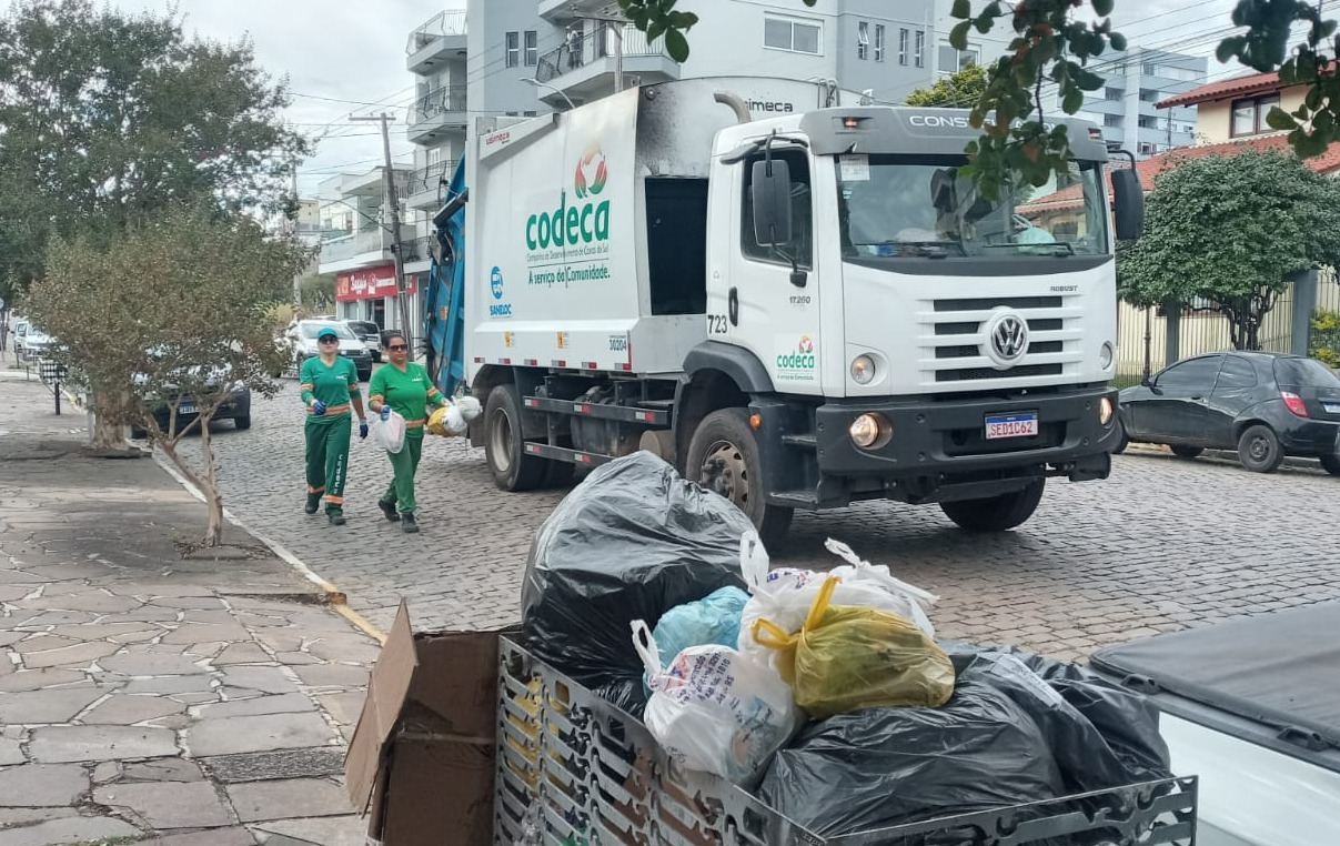Um caminhão, três garis da Codeca e um veículo de apoio atuam em São Marcos desde o início da manhã. Expectativa é de que o serviço demore até uma semana para ser normalizado na cidade.