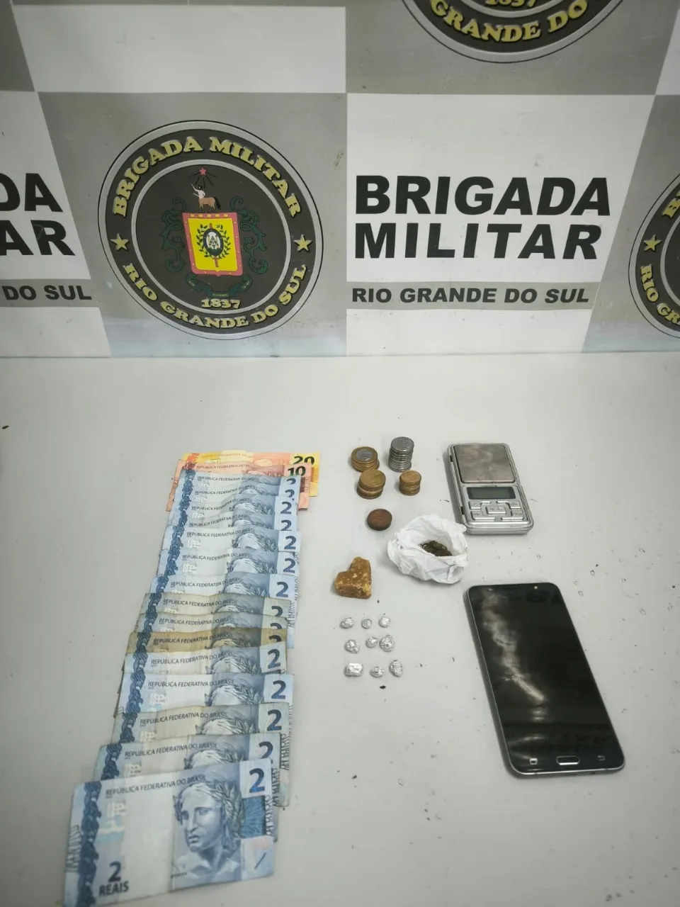 Durante a abordagem, foram apreendidos 14,25 g de crack, 4,15 g de maconha, R$ 75,10, uma balança de precisão e um celular. No mesmo final de semana, um segundo homem, de 24 anos, também envolvido em atividades de tráfico, foi detido. Este segundo suspeito havia sido preso na sexta-feira (30/05/2025) por tráfico de drogas e posse de munições no bairro Polo.