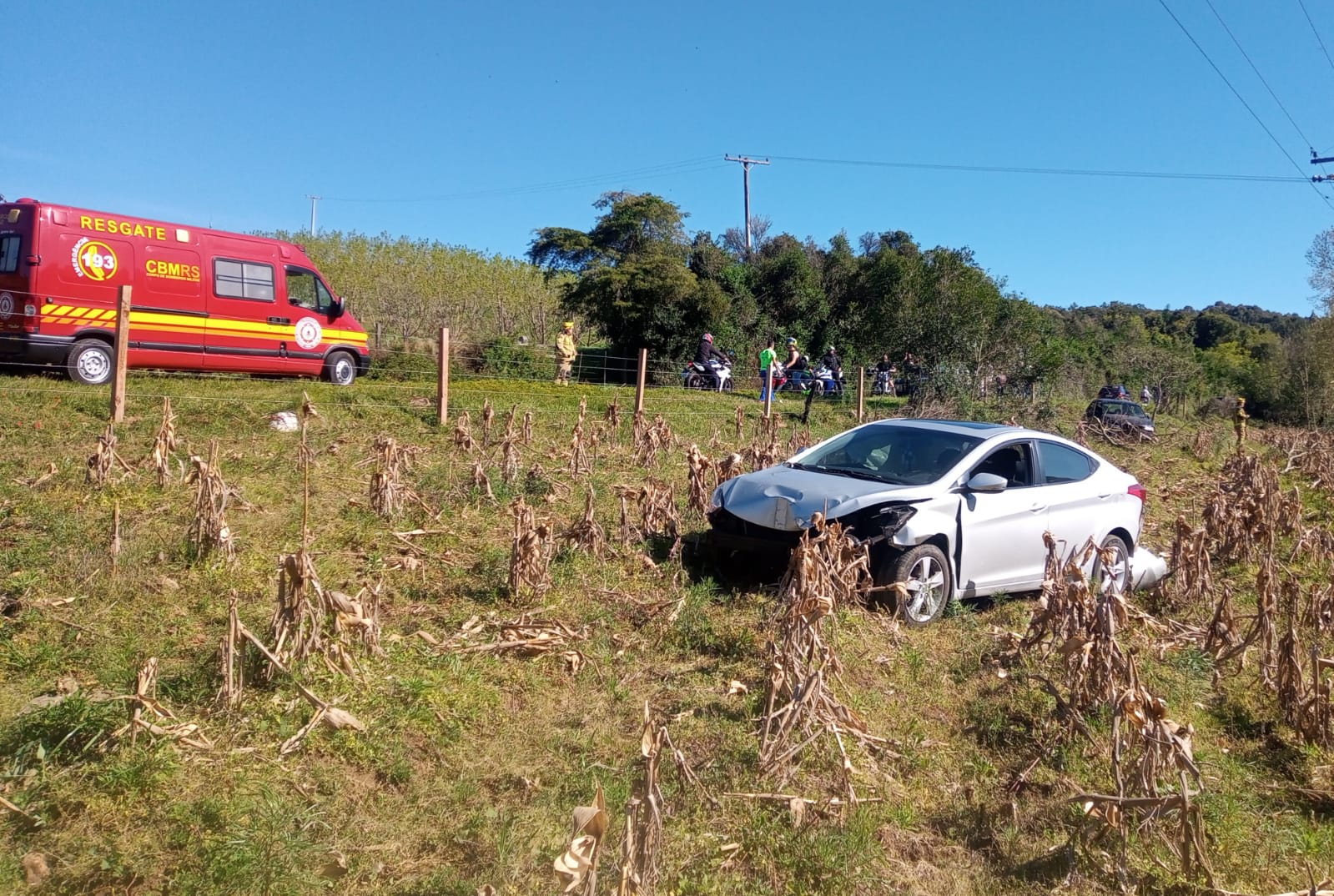 Saída de pista foi registrada no km 8, entre a entrada da Tuiuti e o Rio Ranchinho Por volta das 15h deste domingo (18) as equipes do SAMU e Bombeiros foram acionados para atender um acidente de trânsito no km 8 da VRS 315, na Linha Tuiuti.