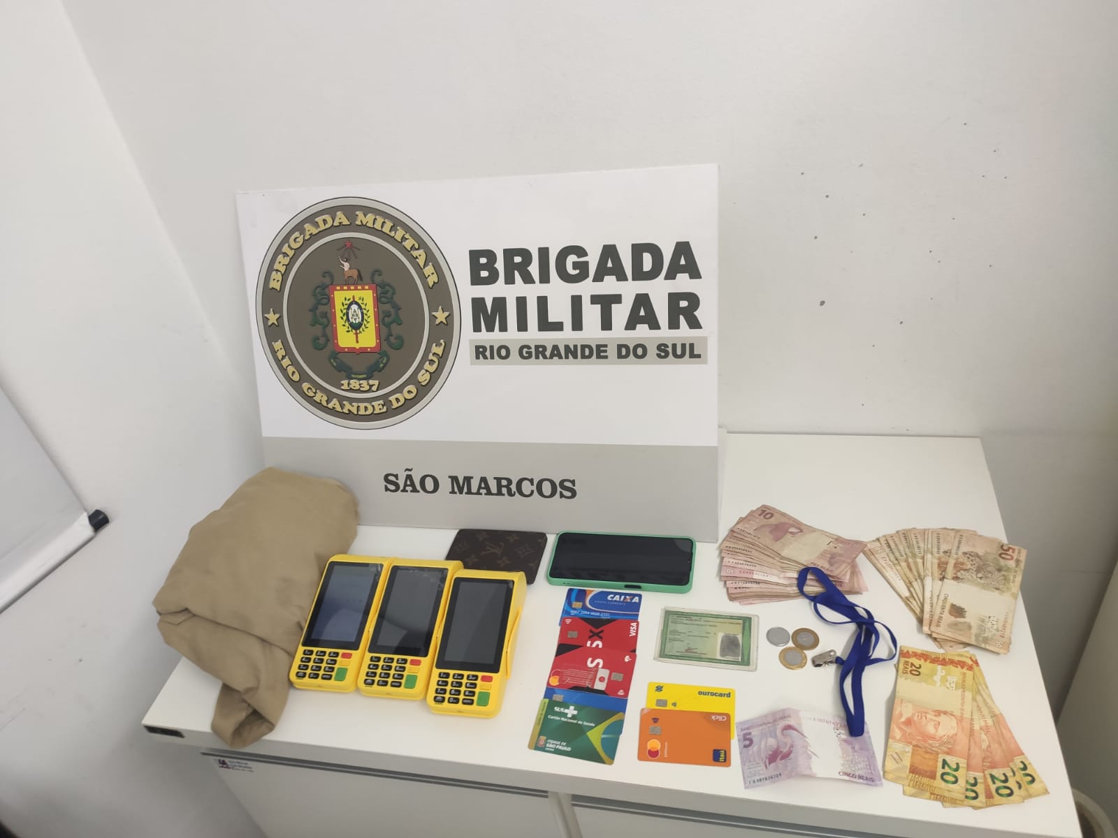 Na tarde desta sexta feira, 03 de março, a Brigada Militar foi informada que um indivíduo havia entrado em uma agência bancária para realizar saques com cartões de pessoas diferentes.