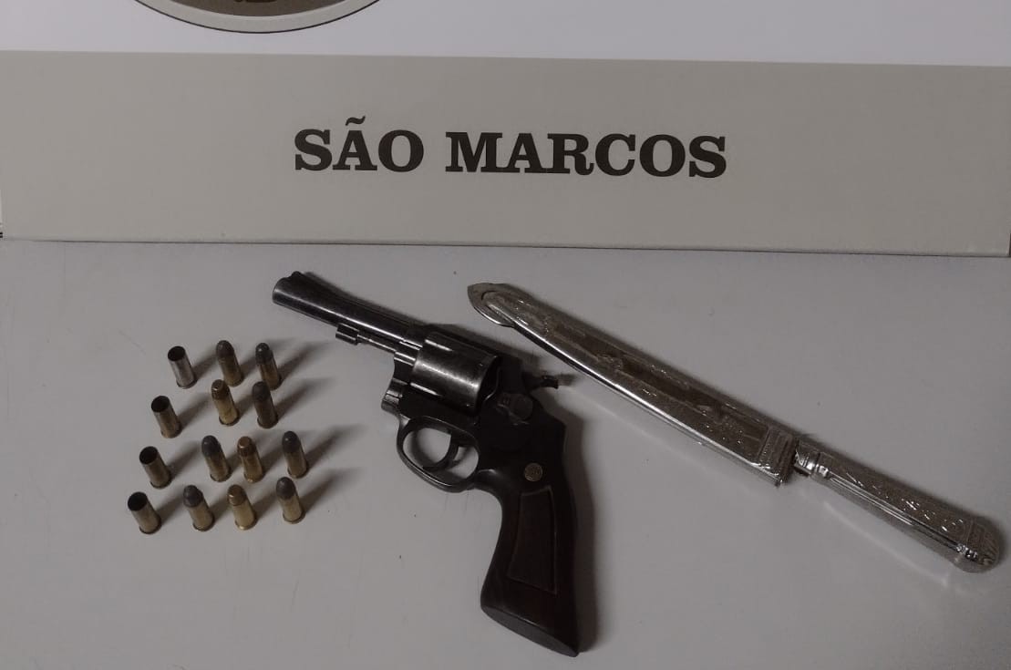 Na madrugada deste domingo, 19/11, a Brigada Militar de São Marcos agiu rapidamente após receber informações sobre um incidente envolvendo um homem de 69 anos. O indivíduo, após uma discussão com uma mulher, teria efetuado quatro disparos de arma de fogo em via pública, causando apreensão na rua Henrique Machado Silveira, bairro Francisco Doncatto.