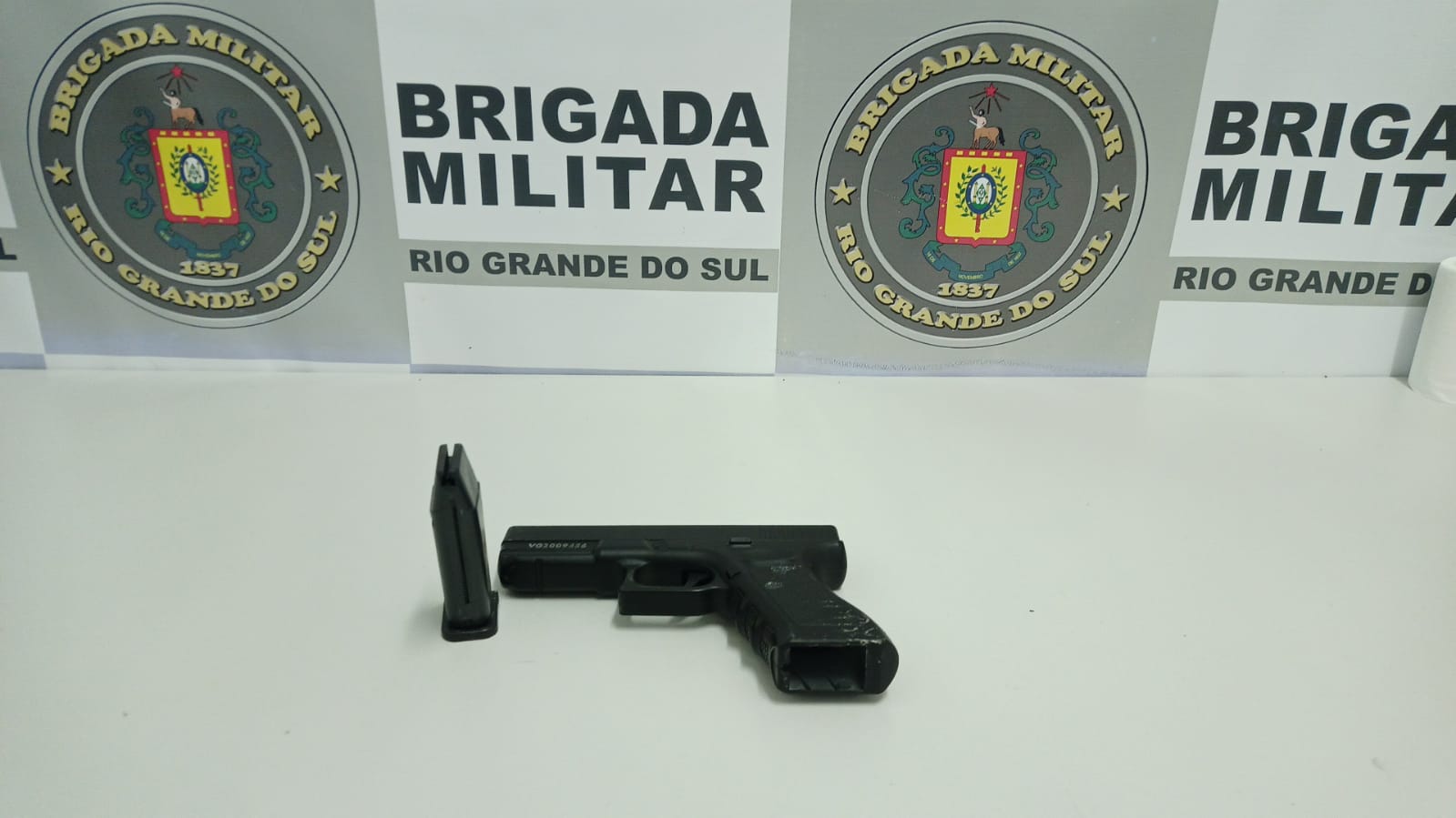 Durante busca no veículo do homem de 32 anos foi encontrado um simulacro de pistola que foi apreendido e encaminhado juntamente com os envolvidos para Delegacia de Polícia de Caxias do Sul onde foi feito o registro da ocorrência e apreensão do simulacro.