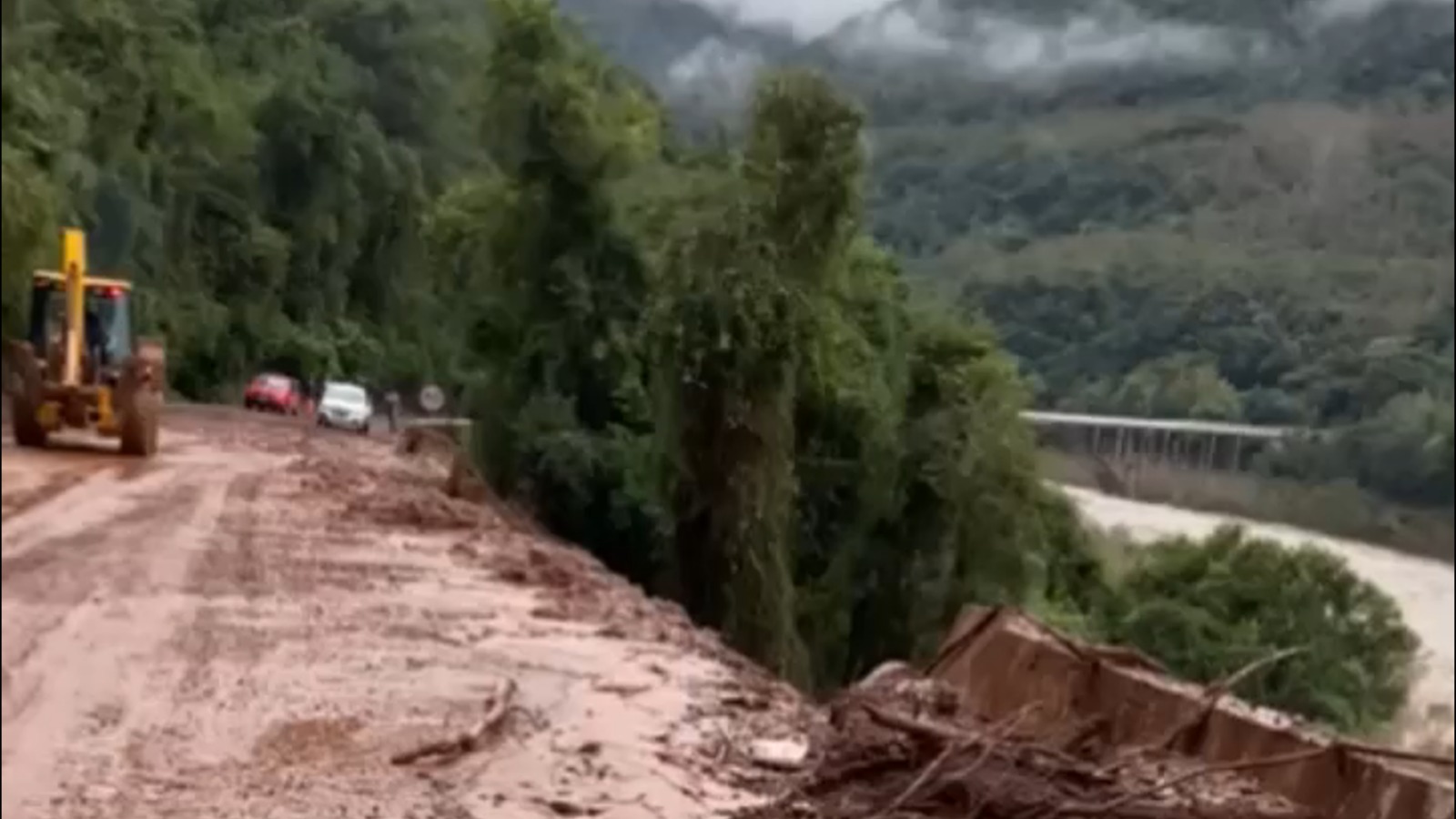 Conforme análise, a ponte sobre o Rio das Antas não sofreu danos. Já o asfalto foi castigado nos quilômetros 96,5, 108 e 112. Máquinas devem chegar nos próximos dias e tráfego pode ser liberado em breve