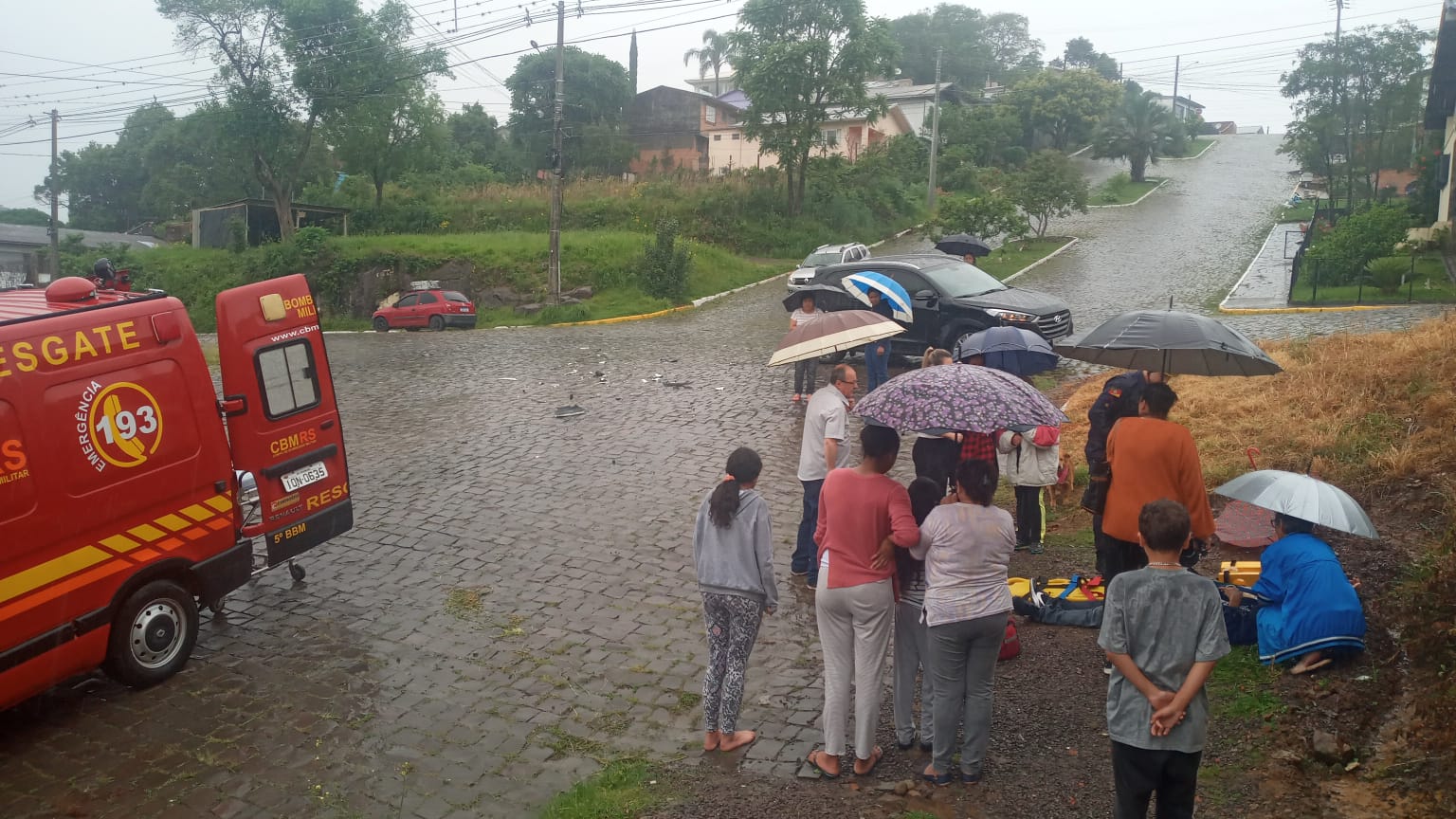 Segundo o relato da própria vítima, o incidente ocorreu quando ele estava caminhando e foi atingido por dois veículos que colidiram no cruzamento. A Brigada Militar também esteve no local para registrar o ocorrido.