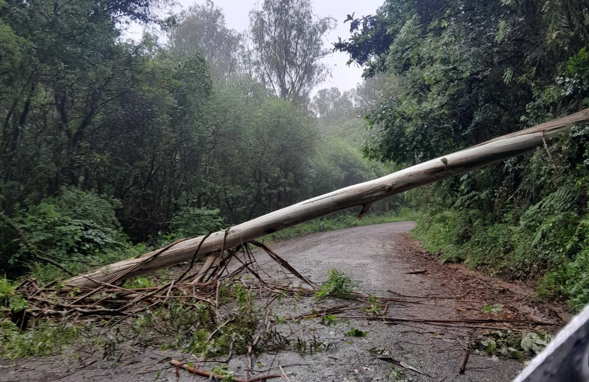 A primeira chamada ocorreu por volta das 13h30, no início do asfalto que leva à Linha Santo Henrique. Pouco tempo depois, às 14h, outra queda de árvore foi atendida na VRS-315.