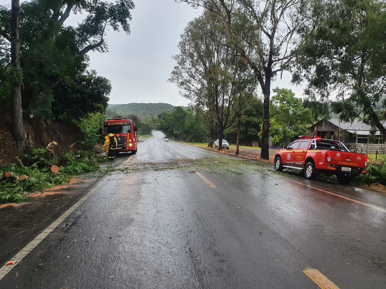 Conforme registro do Corpo de Bombeiros, por volta das 17h uma árvore de grande porte caiu sobre parte da pista na altura do km 107, próximo da Tenda do Nene, sentido Campestre da Serra.