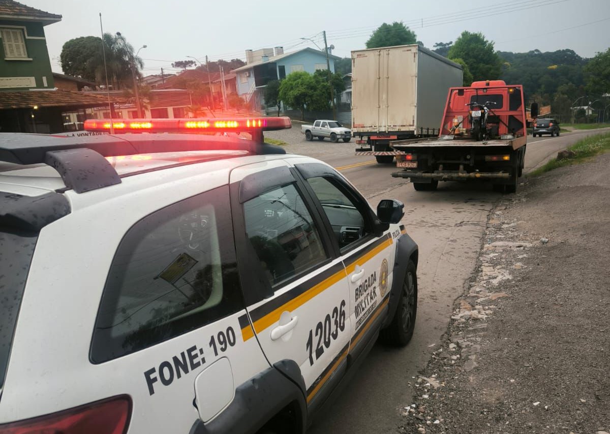 Na manhã desta quarta-feira (25/09), a Brigada Militar, por meio do 36º Batalhão de Polícia Militar, apreendeu uma motocicleta conduzida por um menor de idade em situação irregular durante a Operação Cerco Fechado, no centro de São Marcos. A ação ocorreu na rua Rafael Ruaro, após a guarnição avistar o veículo transitando sem espelhos retrovisores, o que motivou a tentativa de abordagem.