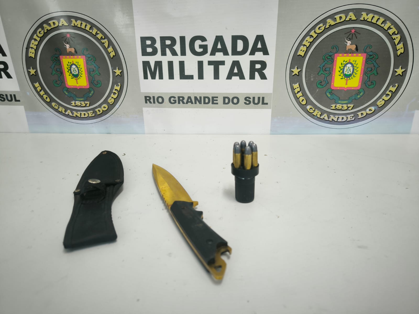 Brigada Militar de São Marcos apreende munições e faca após abordagem em saída de festa