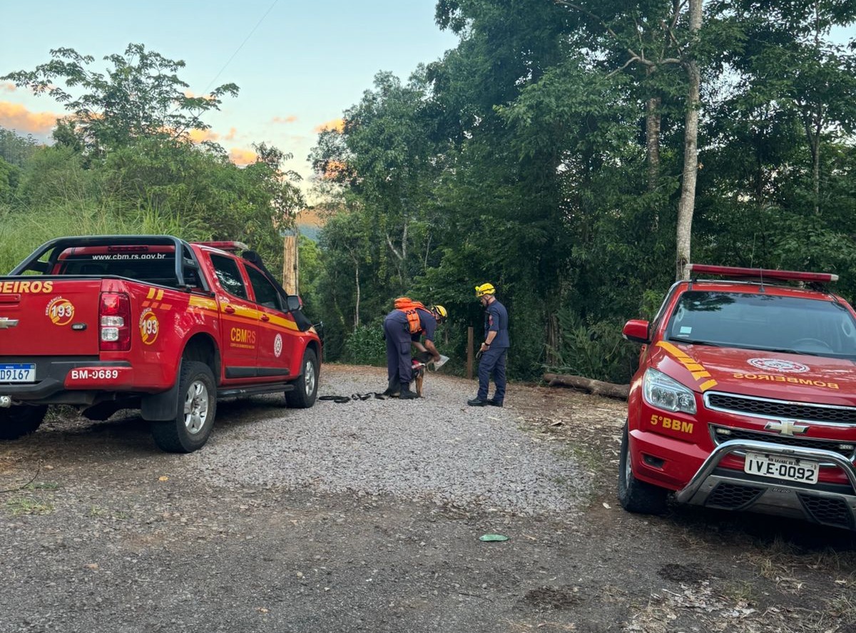 “Ontem utilizamos um cão especializado em localizar vítimas vivas, mas não encontramos indícios. Hoje, com o reforço dos cães de Passo Fundo e a continuidade do uso do drone, as equipes estão mais robustas. Os trabalhos iniciaram com cinco militares, incluindo soldados de Vacaria e Caxias do Sul”, explicou o sargento Cristiano.