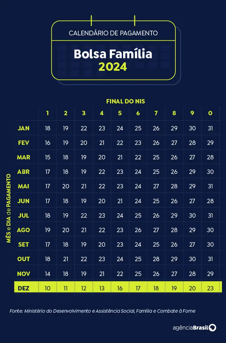 A Caixa Econômica Federal começa a pagar a parcela de dezembro do novo Bolsa Família nesta terça-feira (10) aos beneficiários com Número de Inscrição Social (NIS) de final 1.