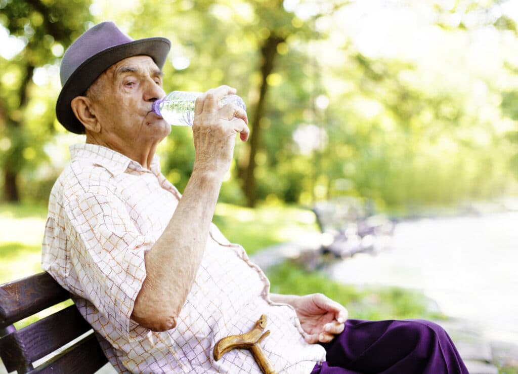 A questão da hidratação precisa ser levada a sério. Dr. Cintra revela que pessoas idosas tendem a ter a sensação de sede reduzida, além da dificuldade de troca de calor. Segundo ele, o mecanismo da sede pode estar reduzido na pessoa idosa, o que pode levá-la a uma diminuição na ingestão de líquidos e, por essa razão, há a necessidade de estimular esse consumo. “Artifícios como água saborizada, sucos leves, chás frios e água de coco podem ser usados, pois garantem a hidratação adequada”, afirma o geriatra, ratificando que é importante evitar bebidas alcoólicas, cafeinadas ou muito açucaradas, pois podem contribuir para a desidratação. Alimentos ricos em água, como frutas, entre elas melancia, melão e laranja auxiliam na hidratação, assim como alguns vegetais, como pepino e abobrinha. “É fundamental estar atento a sinais como lábios e língua secos, diminuição do volume da urina, alterações de comportamento, confusão mental, tontura e fadiga. Tudo isso pode indicar que o idoso está desidratado.”