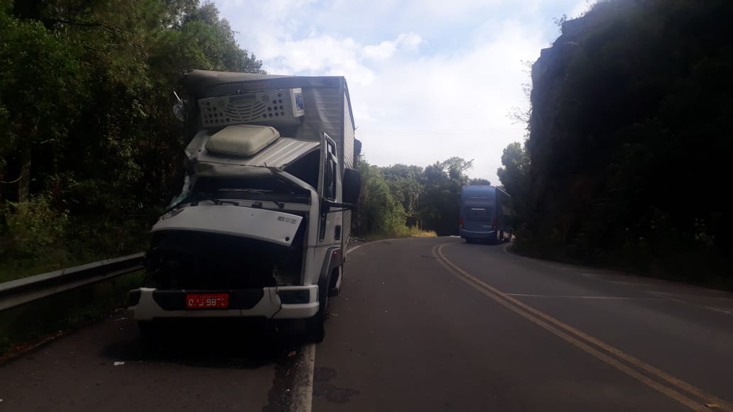Por volta das 9h desta segunda-feira (30) um caminhão baú chocou-se contra um paredão de pedras na altura do km 122 da BR 116, entre São Marcos e Caxias do Sul. O Ford/Cargo com placa da cidade de São Ludgero – Santa Catarina, estava vazio e seguiria até a Fazenda Souza onde carregaria verduras.