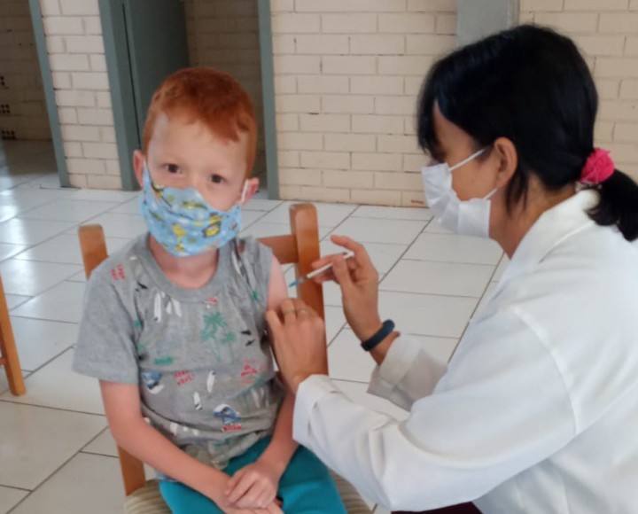 Na quarta-feira (09), acontece a aplicação da primeira dose para crianças maiores de 5 anos. A vacinação inicia às 10 h e não é necessário agendamento.