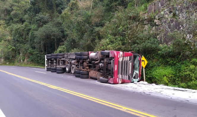 Carreta tomba no KM 106 da ERS-122 em Flores da Cunha