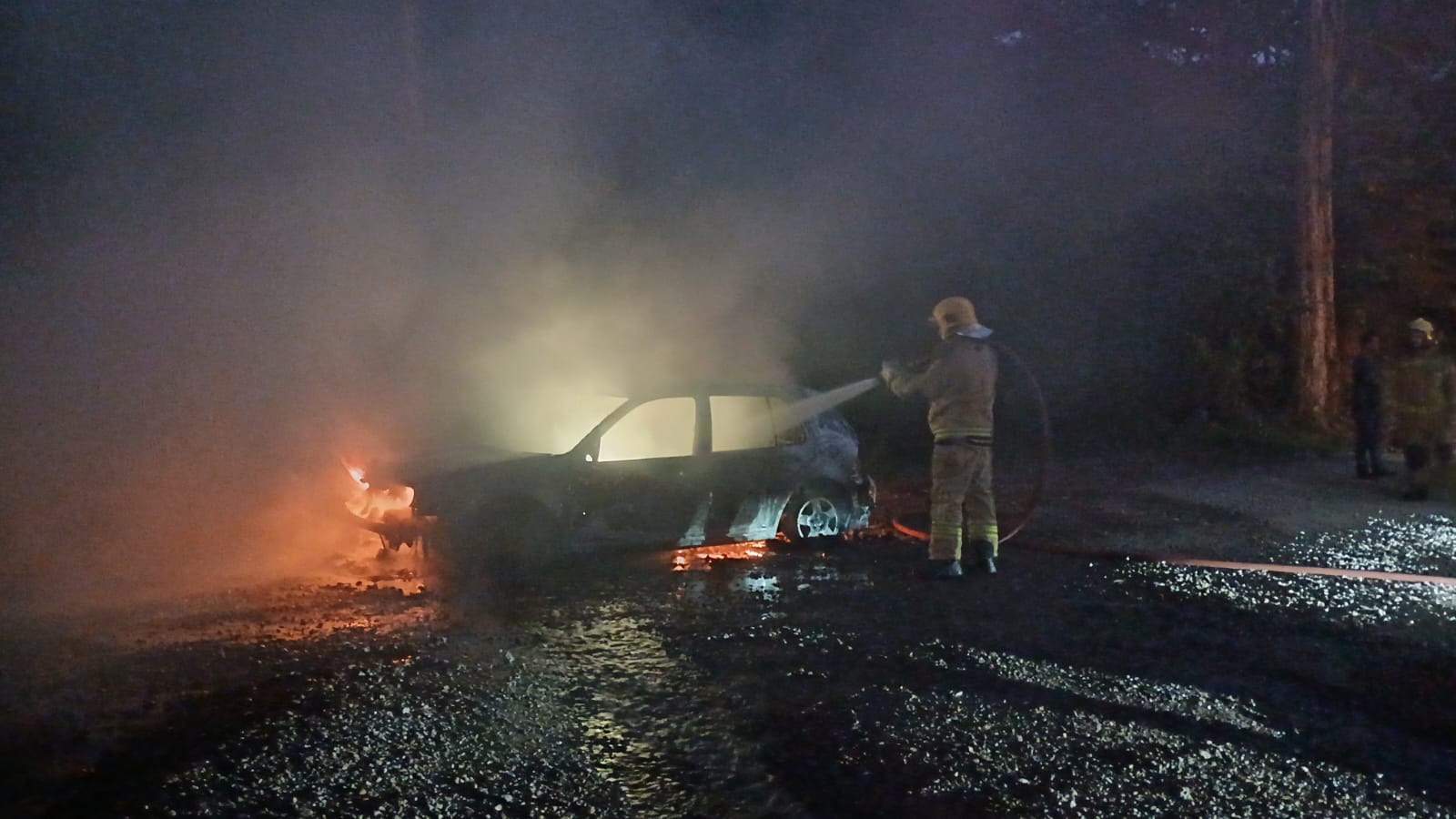 O motorista, que estava sozinho no carro, percebeu a presença de fumaça antes que as chamas se alastrassem rapidamente pelo automóvel, um Golf prata. Não houve feridos.