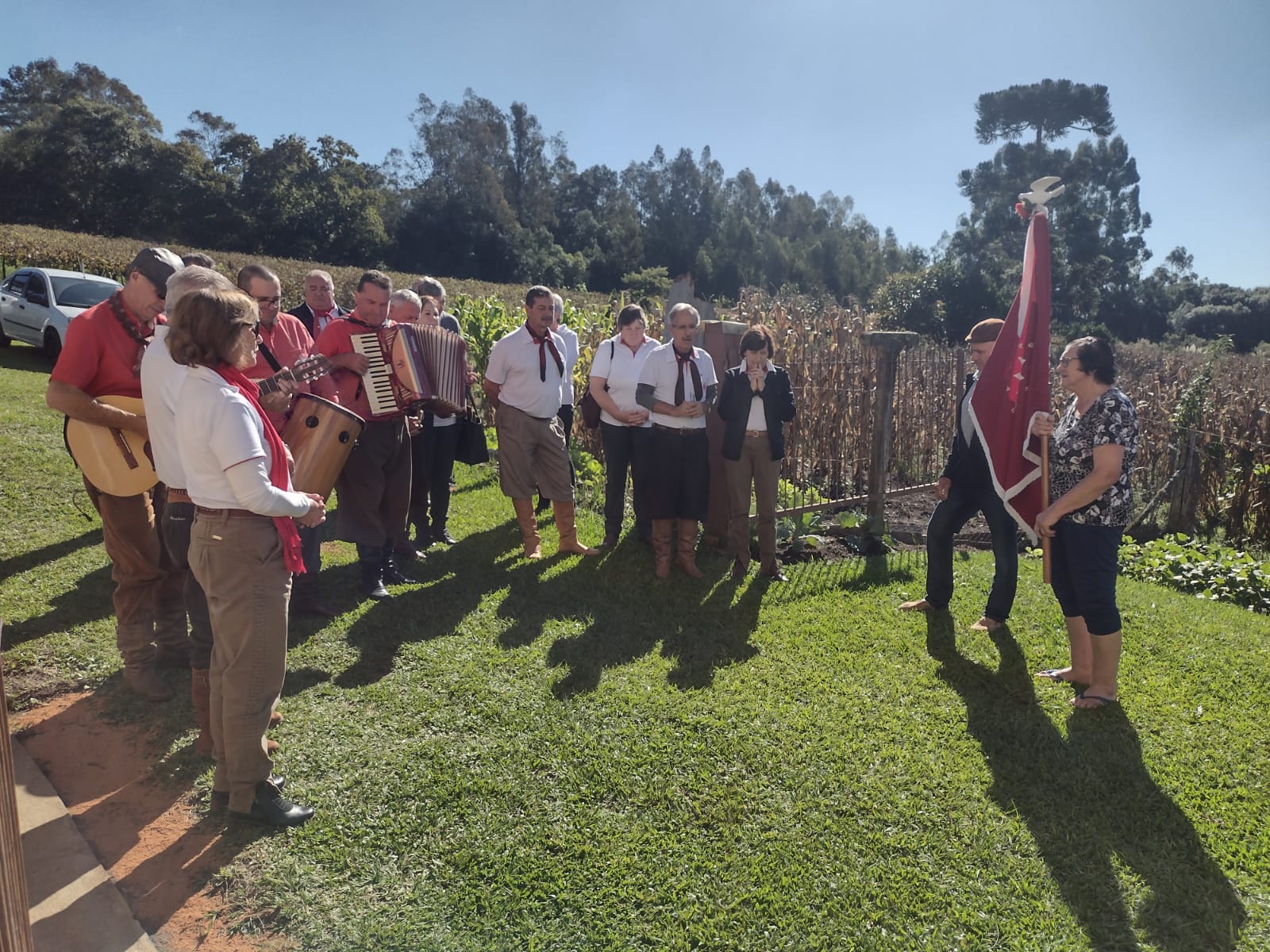 Mas nesta terça-feira (9), em um ato de empatia, a comitiva encerrou as visitas em São Marcos atendendo ao pedido especial de um casal de idosos moradores de São Luís, interior de São Marcos. Dona Terezinha Rizzon Cardoso; 81 anos e Sr. João Manoel Cardoso; 79 anos costumavam receber a comitiva anualmente quando as visitas ainda eram comandadas pelo Padre Pedro Rizzon. Após o falecimento do padre a tradição acabou se perdendo.