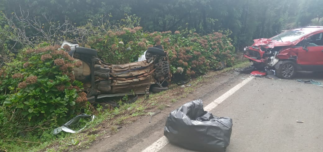 O acidente aconteceu por volta das 15h deste domingo (28) e acabou vitimando o condutor L.F.D, de 20 anos e a passageira L.S, de 18 anos. As vítimas seguiam sentido Campestre da Serra em um GM/Celta quando colidiram em uma Ecosport que seguia sentido São Marcos. O Celta teria invadido a pista contrária sendo atingido na lateral. Com o choque o carro foi jogado para fora da pista.