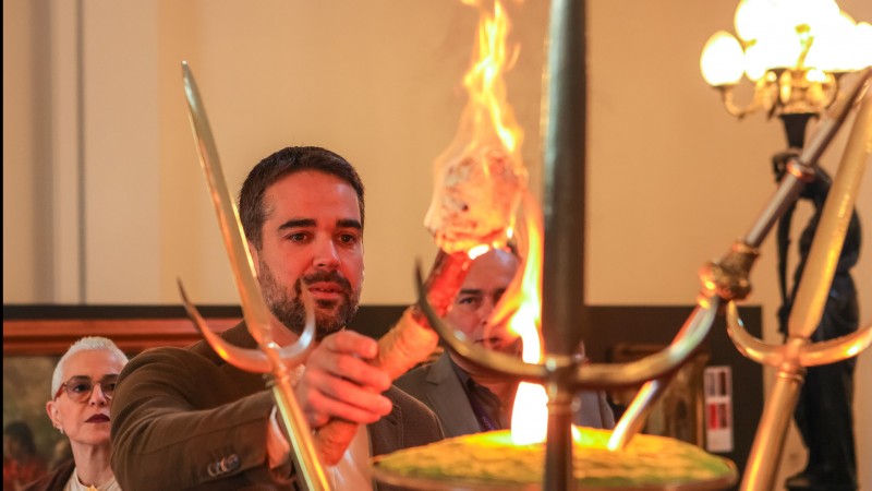 Chama Crioula é acesa no Palácio Piratini simbolizando a união dos gaúchos