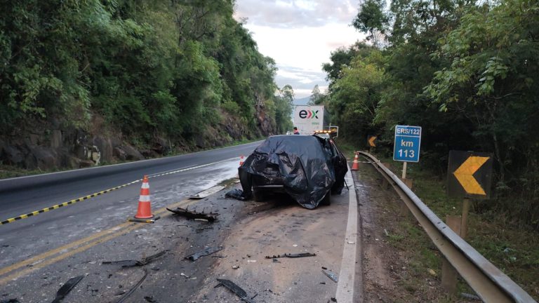 Colisão entre carro e caminhão deixou quatro mortos e um ferido na ERS 122