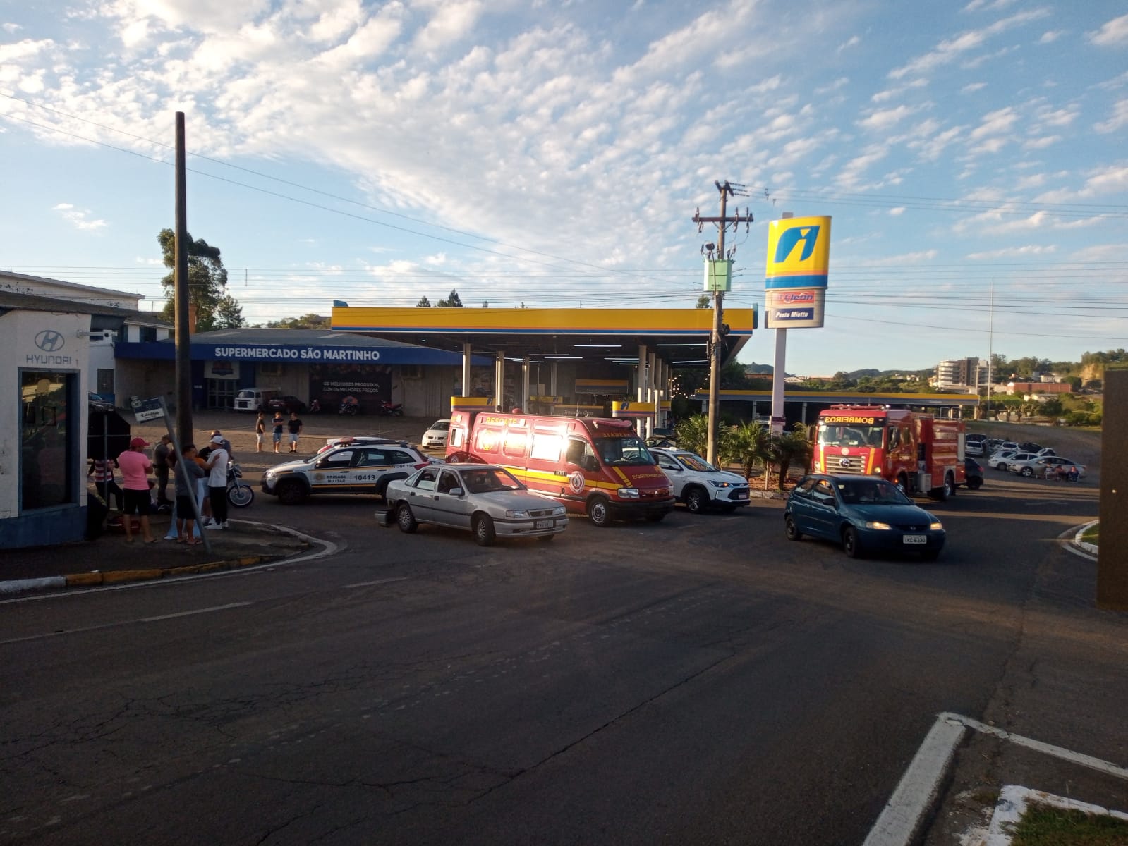 O acidente resultou em danos materiais tanto nas motocicletas quanto no carro.