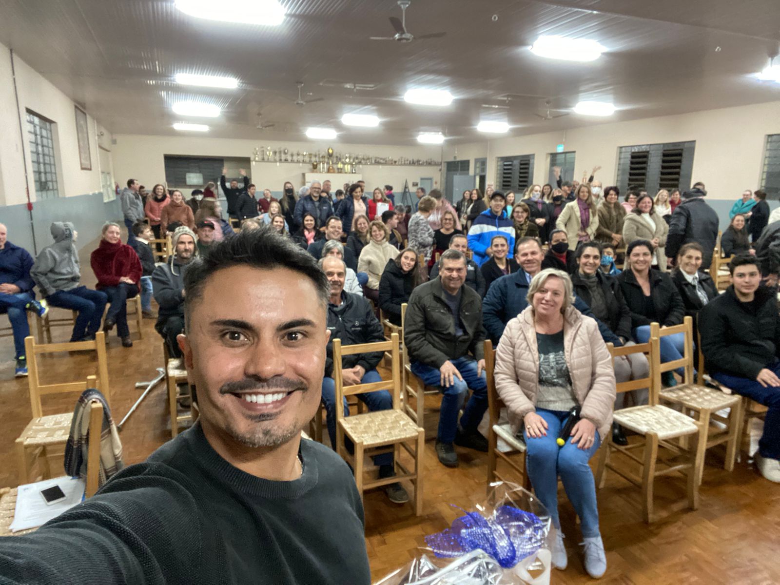 A palestra em São Marcos aconteceu na noite da última quinta-feira (9), no salão da Comunidade de São Cristóvão, bairro Michelon e reuniu cerca de 150 pessoas convidadas. A iniciativa partiu da diretoria da comunidade com objetivo de levar novas experiências para os membros.