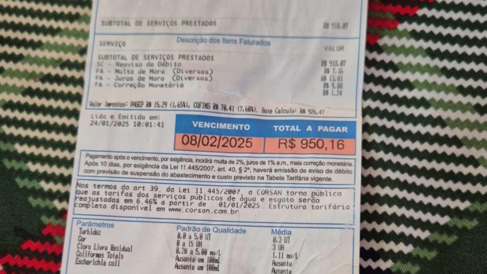 A situação se agravou com o reajuste tarifário de 6,46% aplicado pela Corsan a partir de 1º de janeiro de 2025, conforme anunciado pela companhia. Esse aumento, que visa corrigir a inflação acumulada desde a última correção em julho de 2023, impactou todas as categorias e faixas de consumo.