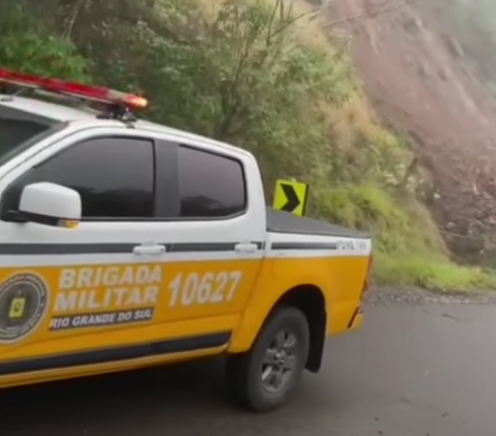 A Polícia Rodoviária Estadual informa que a ERS 122 está bloqueada no km 43, em Farroupilha, em virtude de deslizamento de terra e pedras. Encosta instável e risco iminente de novos deslizamentos.