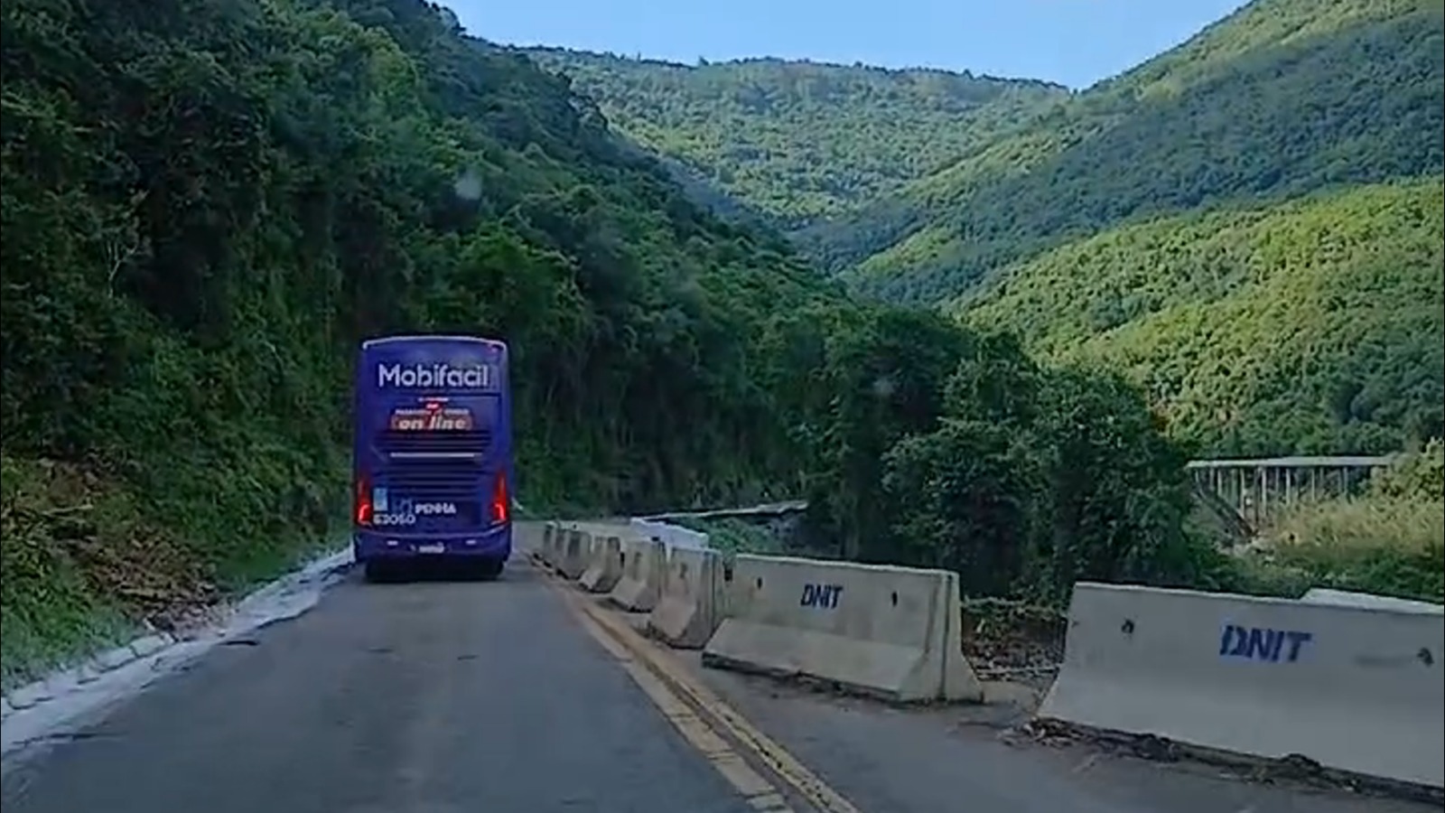 Enquanto o Departamento Nacional de Infraestrutura de Transportes (DNIT) intensifica os trabalhos de manutenção em diversas rodovias federais da Serra Gaúcha nesta semana, o trecho do km 96 da BR-116, próximo à ponte do Rio das Antas, segue sem data definida para reparos definitivos. A pista está parcialmente interditada desde maio de 2024, após fortes chuvas causarem grandes deslizamentos no local.