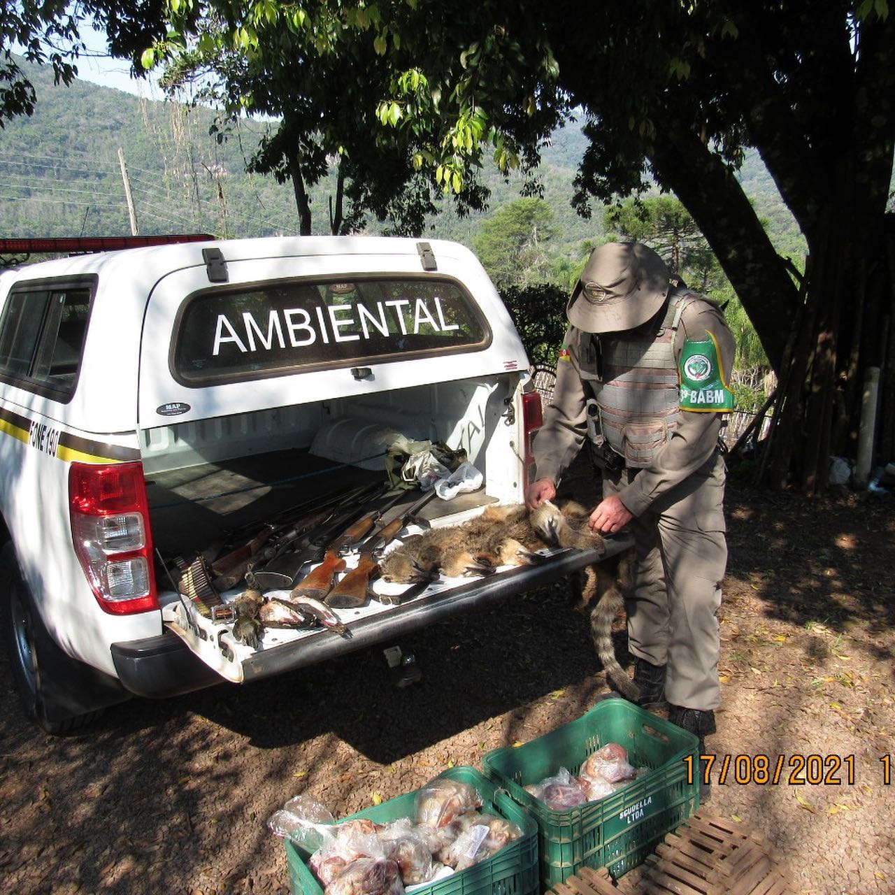 Na tarde desta terça-feira (17), uma guarnição da 2° Cia de Polícia Militar Ambiental durante o atendeu uma denúncia que relatava cães de caça em situação de maus tratos em uma propriedade rural na localidade de Caravaggio da 6ºLégua, no interior do município de Caxias do Sul. No local a equipe efetuou a prisão de dois indivíduos por maus-tratos a cães, posse ilegal de armas de fogo e caça de animais silvestres.