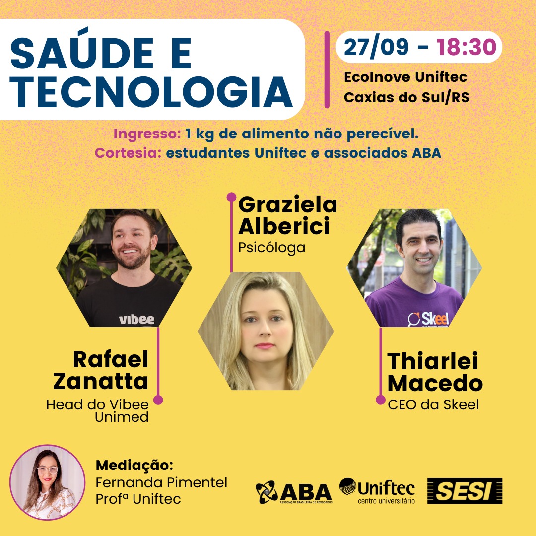 O painel acontecerá em Caxias do Sul/RS, no espaço EcoInove da Uniftec. O evento é gratuito para os associados da ABA e para os estudantes do Uniftec e custa 1 kg de alimento não perecível para o público em geral.