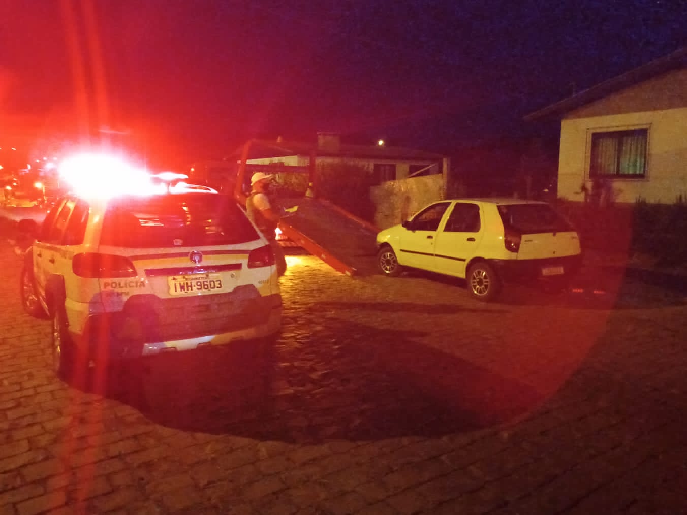 Ao chegar ao local o suspeito foi abordado no momento em que estava saindo com seu veículo Fiat/Palio LZQ6G83, o qual quando consultado encontrava-se em situação de furto/roubo na cidade de Vila Seca, desde o dia 6 de fevereiro deste ano.