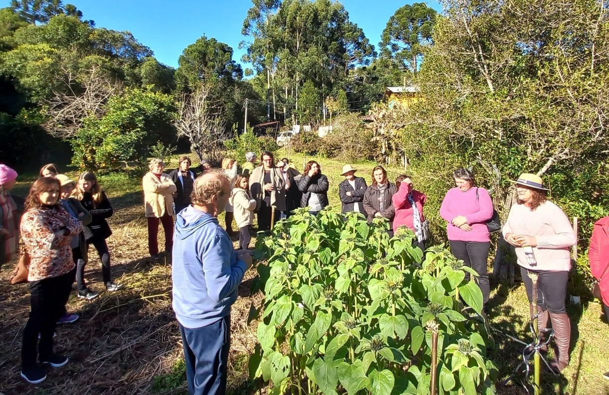 São Jacó sediou uma visita técnica sobre práticas agrícolas na tarde de segunda-feira. O encontro foi organizado pela Emater de São Marcos e atraiu cerca de 30 pessoas da comunidade, a grande maioria mulheres. A reunião ocorreu na propriedade de Maria Luiza Novello, produtora de uvas bordô.
