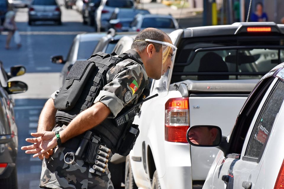 Em Farroupilha, a cidade onde as linhas de produção da empresa Grendene, mudou totalmente o nicho de produção, para preparar materiais para profissionais da segurança e da saúde, gratuitamente, em meio a pandemia que a atinge o mundo, os PMs locais foram os primeiros a receber os equipamentos que também será doado para todo o efetivo policial de todas as cidades do estado.