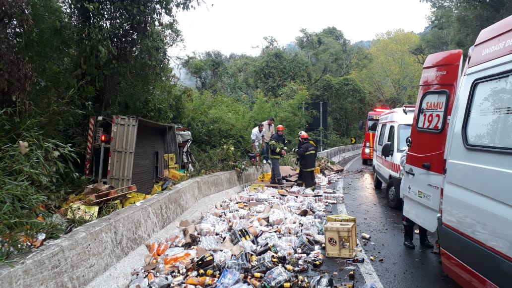 Por volta das 7h desta sexta-feira (17) o Corpo de Bombeiros e equipes do Samu foram acionadas para atender um tombamento de caminhão no km 91 da BR 116, entre São Marcos e Campestre da Serra.