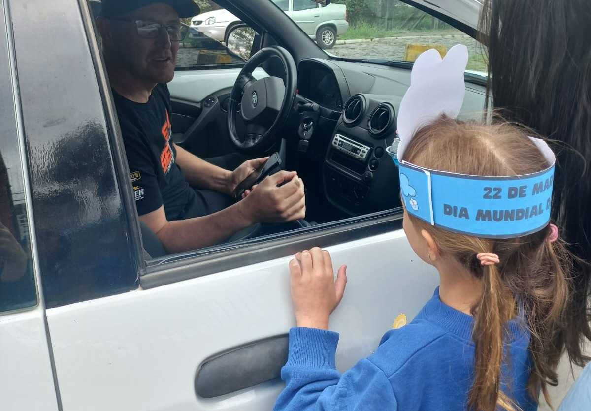 Durante o pedágio, os estudantes não apenas distribuem mensagens sobre a importância da água, mas também entregam copos d’água à comunidade que passa em frente das escolas, proporcionando um momento simbólico para refletir sobre a essencialidade desse recurso. Além disso, os alunos confeccionaram cartões e murais para reforçar a mensagem, demonstrando seu envolvimento e comprometimento com a causa.