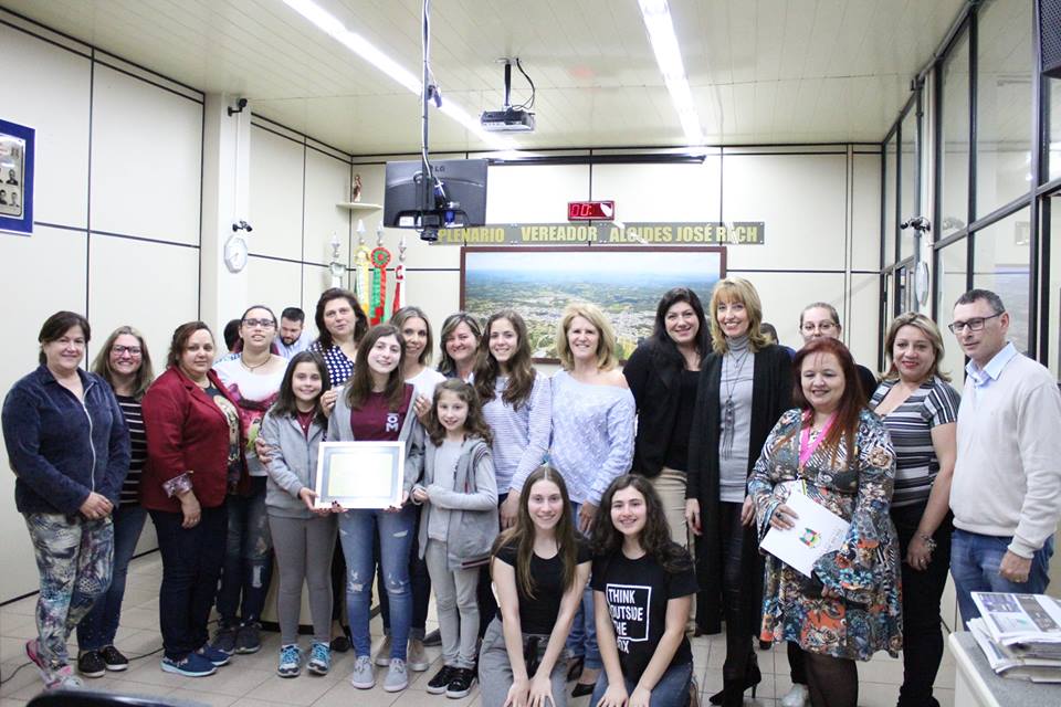 Escola Orestes Manfro foi destaque no Índice da Educação Brasileira Básica (IDEB) em 2017. Na ocasião, a escola conquistou o primeiro lugar nas séries finais do ensino fundamental e o quinto lugar no índice geral, que inclui também escolas municipais e militares do estado, os resultados foram divulgados em setembro deste ano. Por este motivo, a Câmara de Vereadores realizou Ato Solene na noite desta segunda-feira para homenagear alunos, professores e direção pelo empenho e dedicação na educação. Na ocasião, também esteve presente a Coordenadora da 4ª CRE, Sra. Janice Moraes.