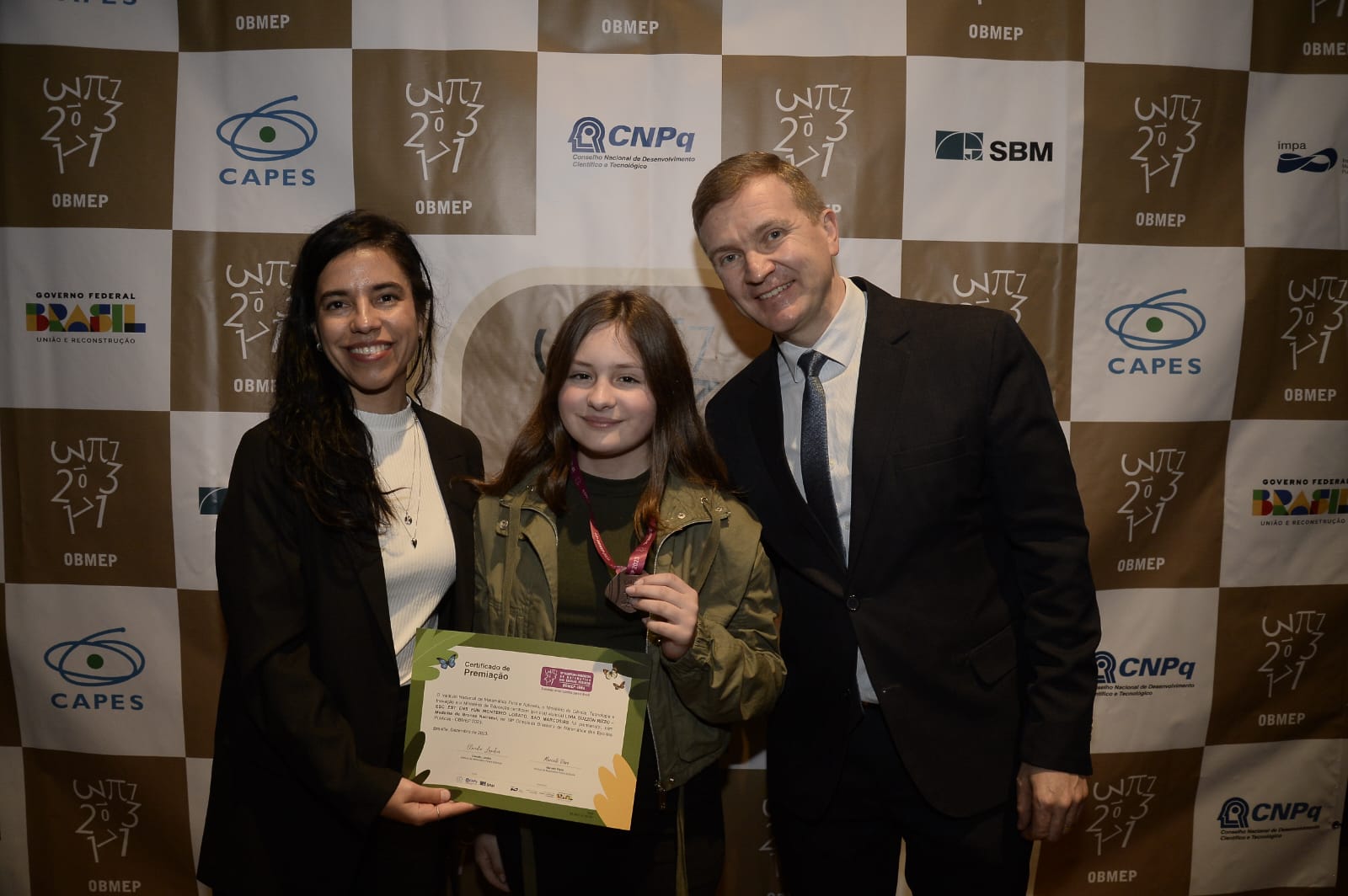Orgulhosos, seus pais, Admilson e Taciana, que integram o CPM da Escola Monteiro Lobato, acompanharam a filha na premiação em Porto Alegre, onde Lívia recebeu a medalha das mãos do coordenador regional da OBMEP, Esequias Sauter. O desempenho da aluna é motivo de grande orgulho para toda a comunidade escolar, que reconhece seu esforço e dedicação.