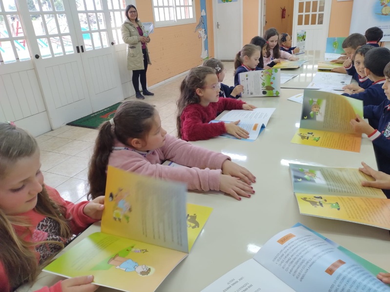 Uma característica especial deste livro é que ele é destinado a crianças alfabetizadas e também àquelas que estão em processo de alfabetização Um gesto inspirador de incentivo à leitura e à imaginação chegou às escolas Manuel da Nóbrega e Joanita Giacomeli Tavares, em Campestre da Serra.