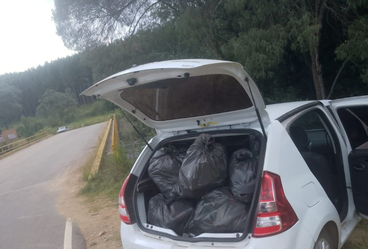 O leitor enviou fotos que mostram o porta-malas de seu veículo cheio de sacos de lixo recolhidos por ele mesmo, evidenciando a gravidade da poluição no local.