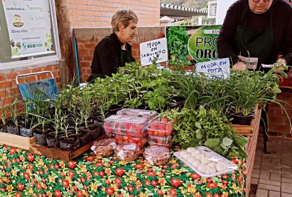 Seis bancas serão montadas ao lado do Centro Cultural e Recreativo Alexandre Zaniol. Haverá pães assados em forno de barro, pastéis fritos na hora, cafés e sucos, frutas e verduras sem agrotóxicos (orgânicos) e tradicionais, artesanato, conservas, chás, temperos e ovos.