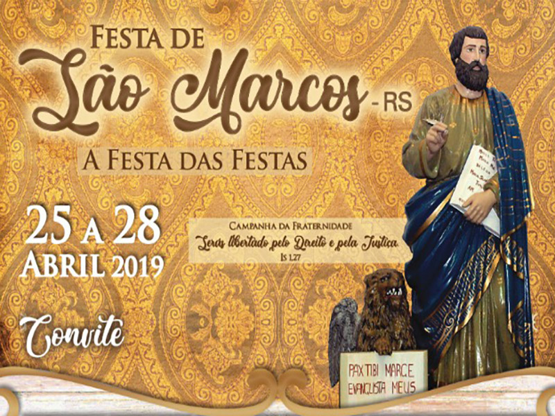 “Nós da Paróquia de São Marcos gostaríamos de convidar toda comunidade de São Marcos e região para festejar nosso padroeiro. Neste ano vamos homenagear todas as equipes administrativas das comunidades que compreendem nossa Paróquia, e que buscam sempre o bem comum” reforça o pároco local Pe. Tadeu A. Libardi.