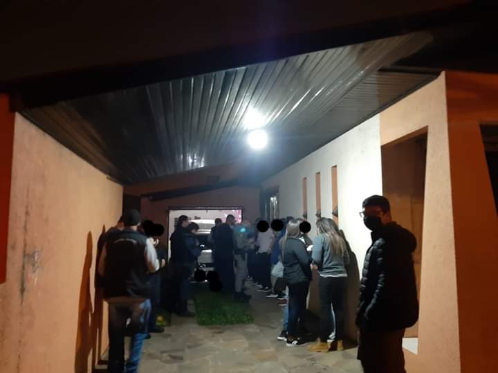 Festa em uma residência reunia 15 pessoas sem máscara e aglomeradas Na noite desta sexta-feira (4), o Gabinete de Gestão Integrada de Segurança Pública de Vacaria (GGI), através da Polícia Civil, Brigada Militar, Guarda Municipal e Fiscalização Municipal, flagrou uma festa clandestina que estava sendo realizada na garagem de uma residência, em Vacaria.