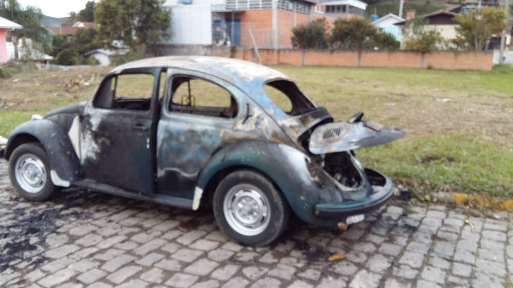 Guarnição de Bombeiros deslocou até o local para verificar um incêndio em veículo. Tratava -se de um fusca verde, 1995. Placas LWW-8512. O veículo foi todo consumido pelas chamas. Não foi identificada a causa e nem o causador, conforme nota dos bombeiros.