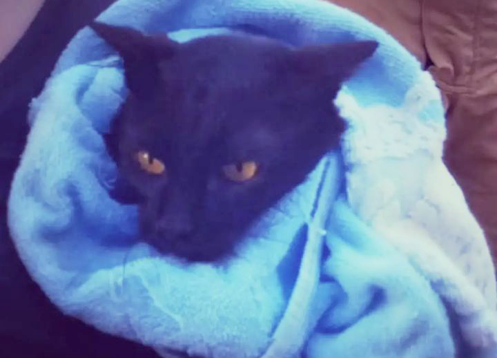 O gato havia caído em um bueiro da via pública e acabou ficando preso, a guarnição do Corpo de Bombeiros Militar utilizou de uma escala para acessar a galeria e encontrou o gato com a coleira presa em uma pedra.