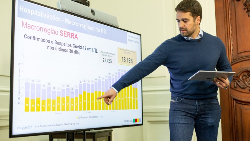 A região de Caxias do Sul, por sua vez, vinha apresentando estabilidade no mês de maio. Entre a semana retrasada e a passada, porém, subiu de 23 hospitalizações confirmadas para Covid-19 para 63, um aumento de 174%. O número de internados em leitos de UTI Covid subiu de 31 para 44, um aumento de 42%. “Vemos uma tendência de aumento de casos na Serra gaúcha. Não houve dados suficientes para que se alterasse a bandeira”, explicou o governador.
