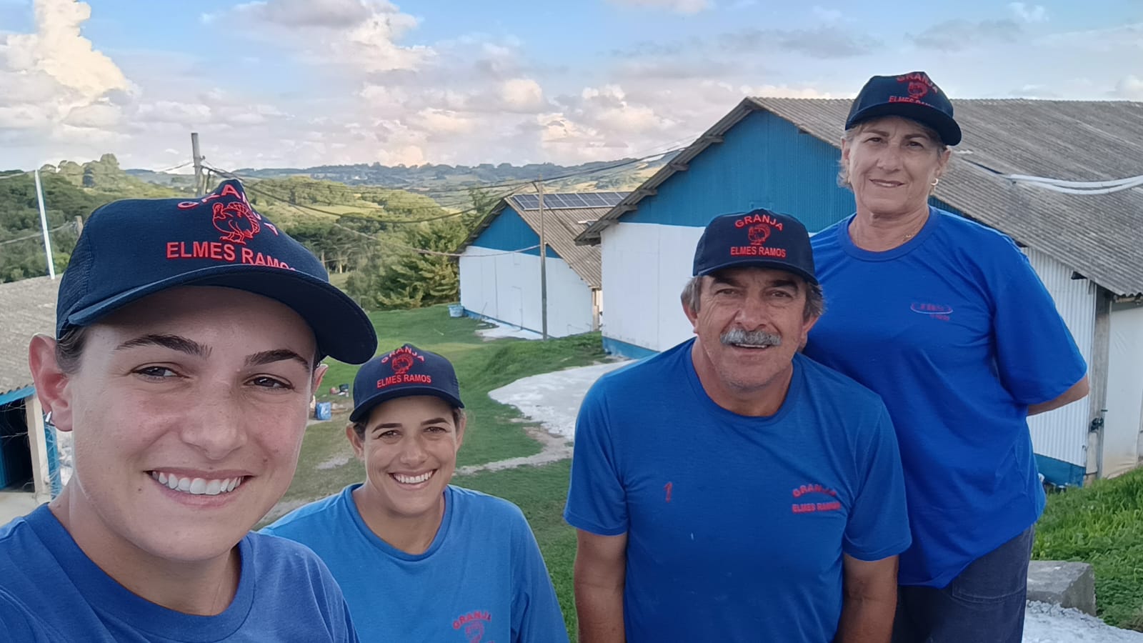 Elmes Kuwer Ramos, patriarca da família, e sua esposa Lurdes Dorceni Muneretto Ramos lideram o empreendimento com maestria, enquanto suas filhas Aline Muneretto Ramos e Nicole Muneretto Ramos desempenham um papel fundamental no gerenciamento e na operação diária da granja. Nicole, com seus 29 anos, compartilhou com entusiasmo insights sobre as atividades desenvolvidas no estabelecimento e a importância da premiação para a família Ramos.
