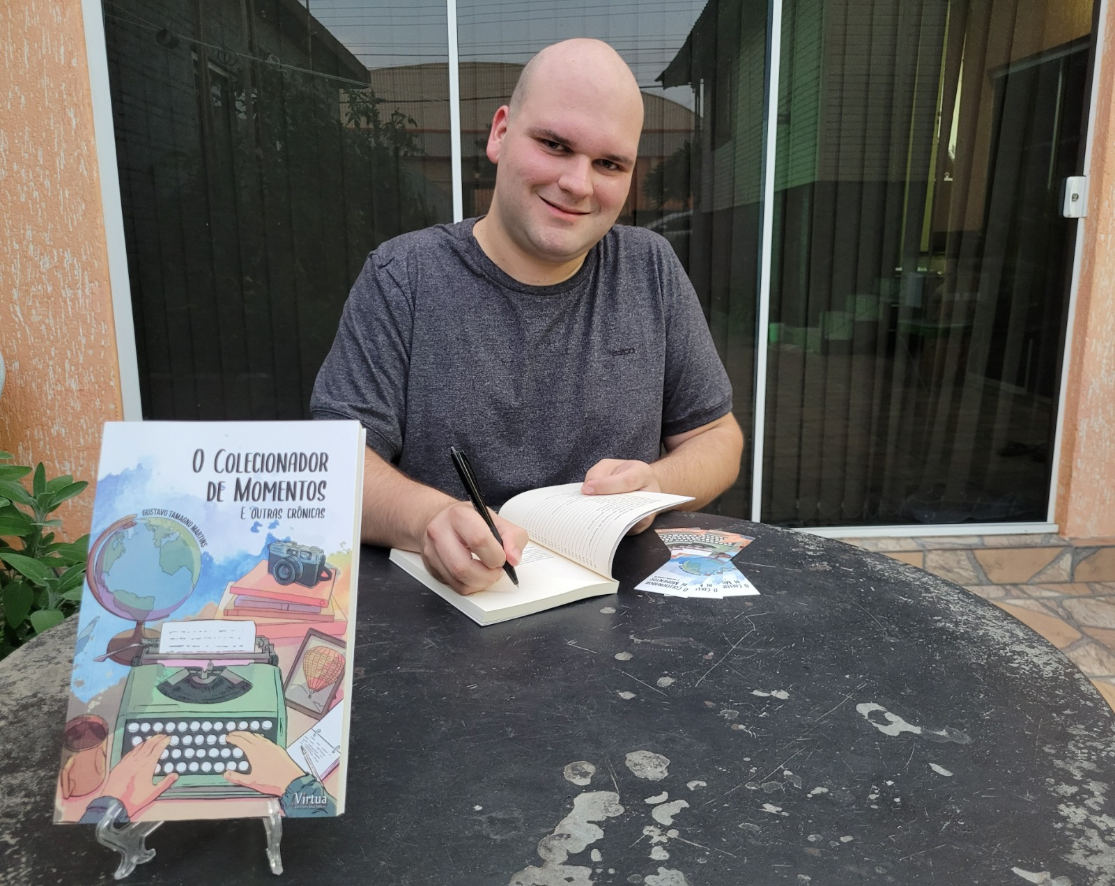 O jornalista e escritor Gustavo Tamagno Martins, natural de Caxias do Sul (RS), está pronto para brilhar na 39ª Feira do Livro da cidade, que terá início no dia 29 de setembro na Praça Dante Alighieri. Um dos destaques do evento será a sessão de autógrafos do seu terceiro livro, intitulado “O colecionador de momentos e outras crônicas”, que acontecerá no sábado, dia 30 de setembro, às 14h, no Espaço 2. Este novo trabalho literário já está à venda na livraria Do Arco da Velha e estará disponível também na banca da feira.