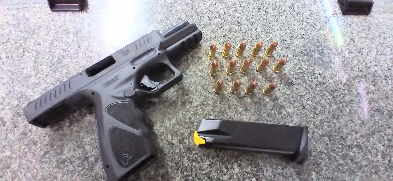 No local a guarnição identificou a vítima e suspeito e os mesmos relataram que o homem teria realizado a limpeza de sua arma de fogo de Marca Taurus, Cal 9mm, devidamente registrada em seu nome, quando foi colocar a mesma em cima da mesa e acabou ocorrendo o disparo que veio a atingir o pé direito da mulher.