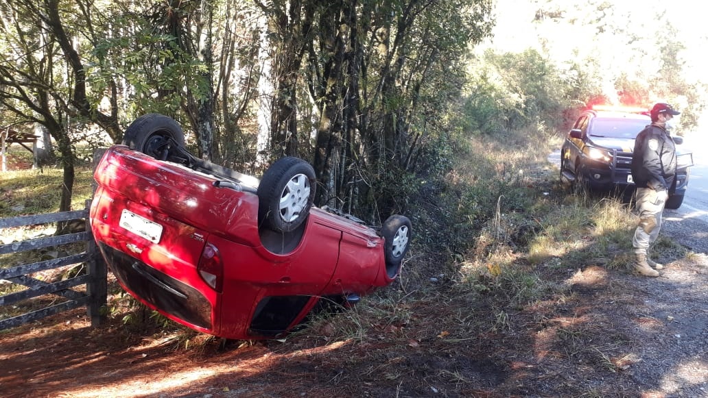 Condutor de um GM/Celta ficou ferido após capotar o veículo próximo ao Rio Redondo na BR 116